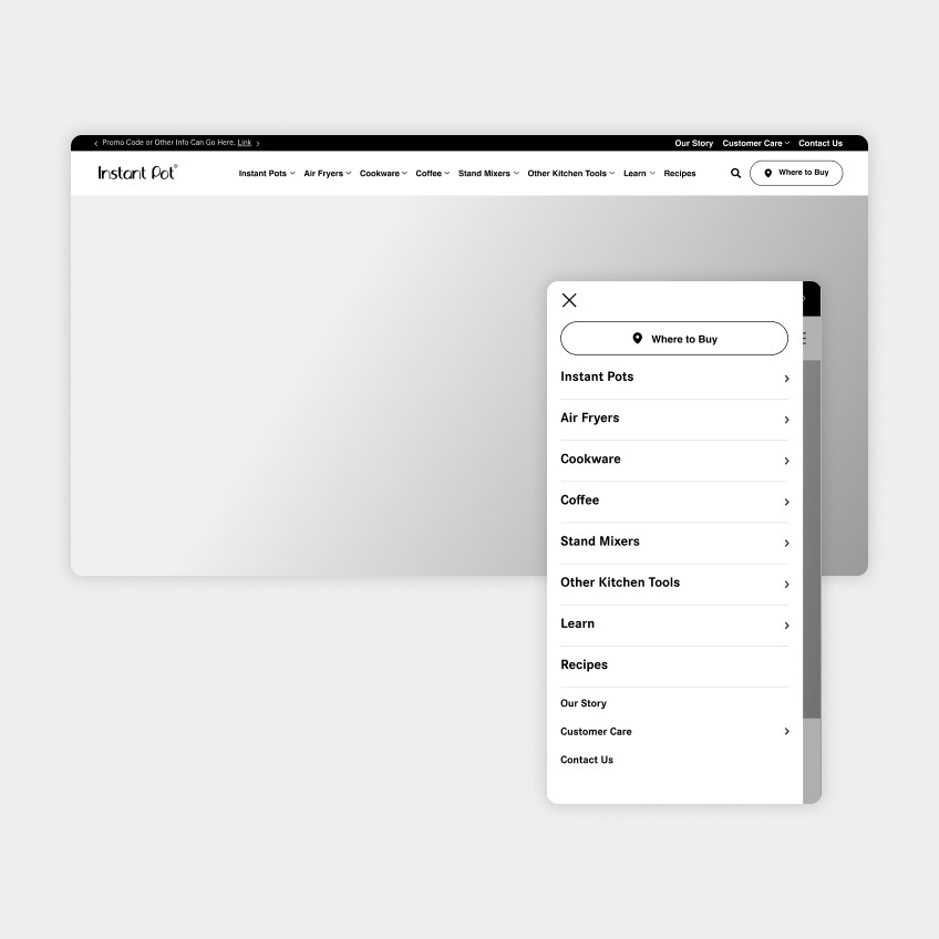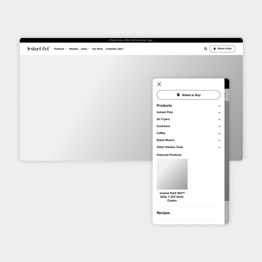 We redesigned the main navigation to make the customer journey more intuitive and improve product discovery, supporting Instant Pot’s expanding range of products.